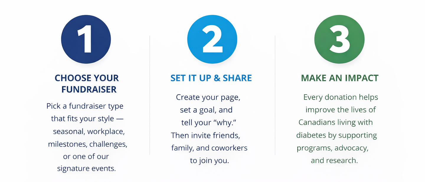 Launch your own My Diabetes Fundraiser, host a Lace Up event, or join one of our signature experiences—your bold idea can make a real difference for the more than four million people in Canada diagnosed with diabetes.